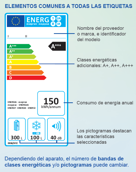 En la escala, los colores verdes distinguen a los electrodomésticos más eficientes mientras que los menos eficientes estarán marcados por el rojo. Es importante señalar que el sistema actual, que utiliza letras de la A a la D, con subtipos A+, A++ y A+++ tiene los días contados. El Parlamento Europeo anunció el pasado verano que a finales de 2019 entrará en vigor un nuevo etiquetado que irá desde la A a la G, y eliminará los subtipos que ostentaba la A. Todo ello para evitar confusiones y simplificar la elección del consumidor.